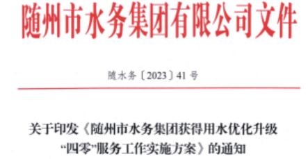 2.關(guān)于印發(fā)《隨州市水務(wù)集團(tuán)獲得用水優(yōu)化升級“四零”服務(wù)工作實(shí)施方案》的通知