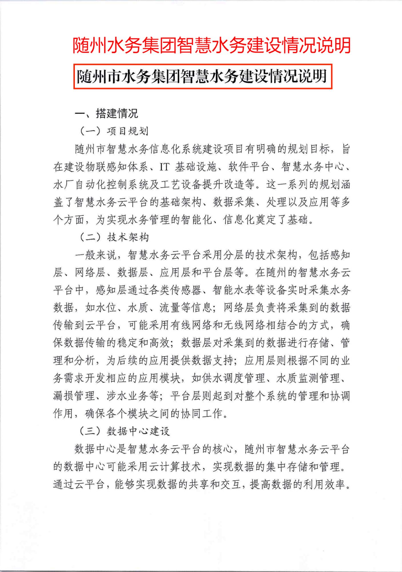 一、水務(wù)集團(tuán)智慧水務(wù)情況說明