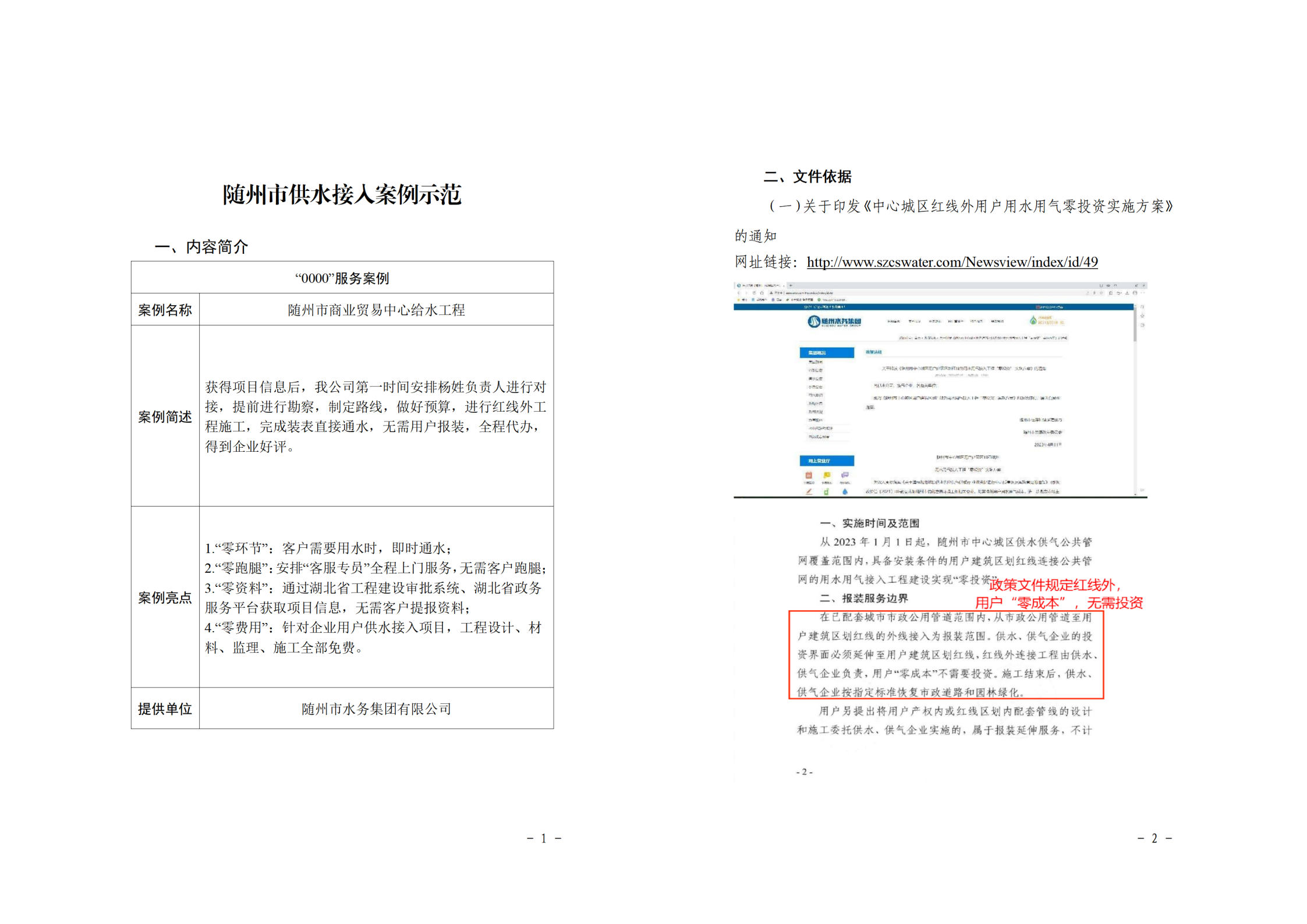 隨州市水務(wù)集團主要職責(zé)是向隨州市中心城區(qū)、曾都區(qū)、隨縣以及高新區(qū)提供供水服務(wù),集團公司下轄城市供水公司、建設(shè)工程公司、水質(zhì)檢測公司、隨縣供水公司、康潤實業(yè)公司5家全資子公司。下面展示隨州市中心城區(qū)供水接入案例示范。