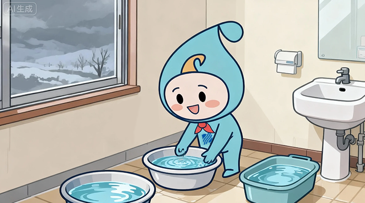 家中長期無人居住時,建議將室內(nèi)或室外總閥關(guān)閉,打開最低處的水龍頭將水管內(nèi)的積水排空,以免水管凍裂。建議用戶在低溫天氣期間適當儲水備用,避免因供水設(shè)施上凍造成生活不便。